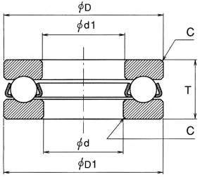 | 内径 d | 内径 d1 | 外径 D | 外径 D1 | 高さ T | 面取り C | ||