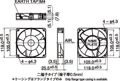 | 11925PB-A0L-EA-00 | □119×25 | 樹脂 | 100 | 65 | 0.22 | 0.18 | 14 | 11 | 2300 | 2700 | 1.8 | 2 | 41.2 | 41.2 | 34 | 38 |