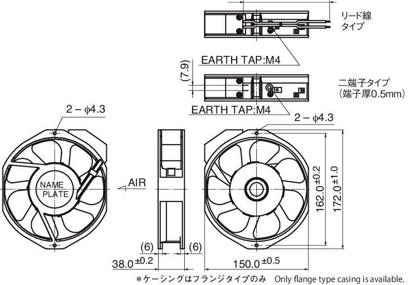 | 騒音 | 定格電圧によりモータ側面より1mにて測定。 |