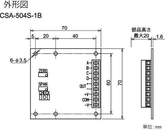 | CSA-504S-1B | DC10V(+0.9V、-0.2V) | ひずみゲージ式変換器(350 Ω)4台まで接続可能 | ±10V 負荷抵抗2kΩ以上 | ±DC15V ±0.75V(150mA) | 300 |