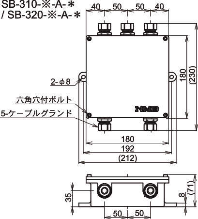| SB-310-4-B-10 | SB-310 | IP67 | 最大4点 | アルミダイカスト | -10°~70° | 約2.5kg | 4 | G1/2PF | φ7mm~φ11mm |