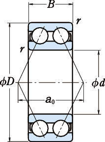 ・単列アンギュラ玉軸受を背面組合せとし、内輪、外輪をそれぞれ一体にした構造です。