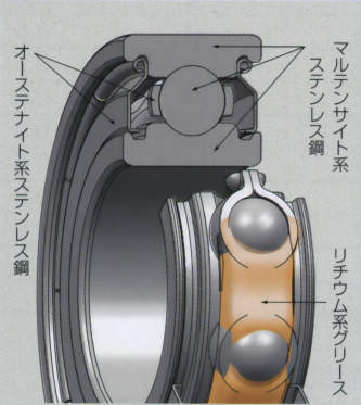 ・ステンレス軸受はNSK特殊環境用軸受スペーシアシリーズの基本製品で、主に高湿度環境用として最適です。