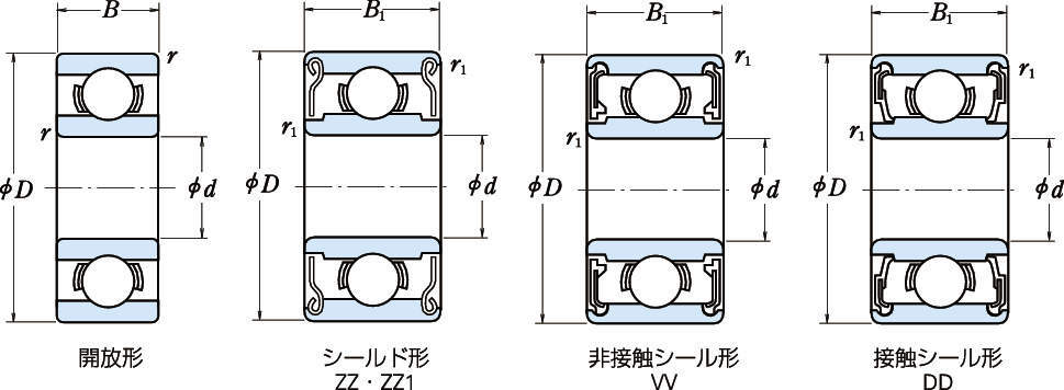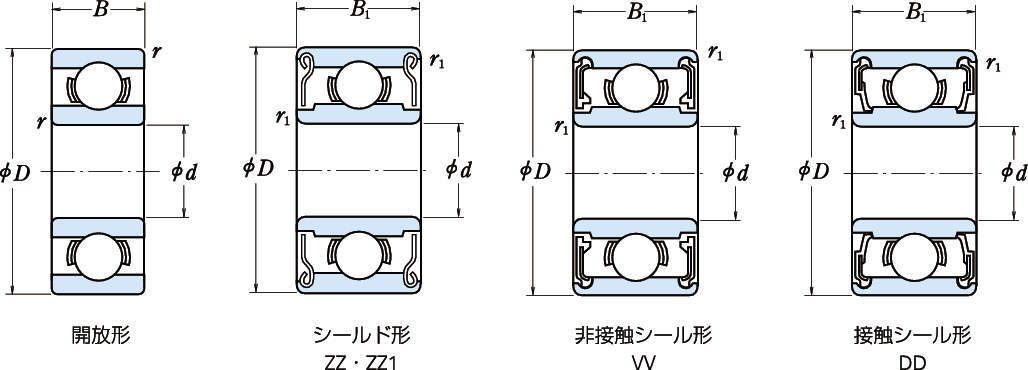 型式 呼び番号 シール・シールド 軌道輪形状 内径