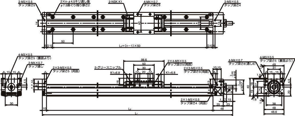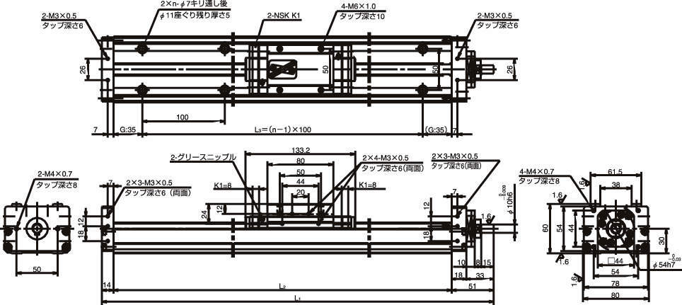 ・レールの下面と片側面に基準を持っているため、取付けの精度出しが容易です。