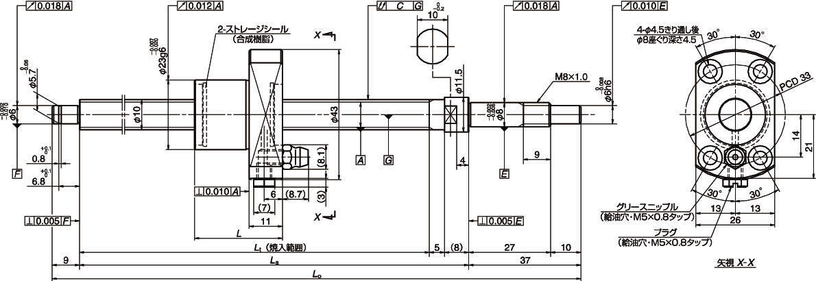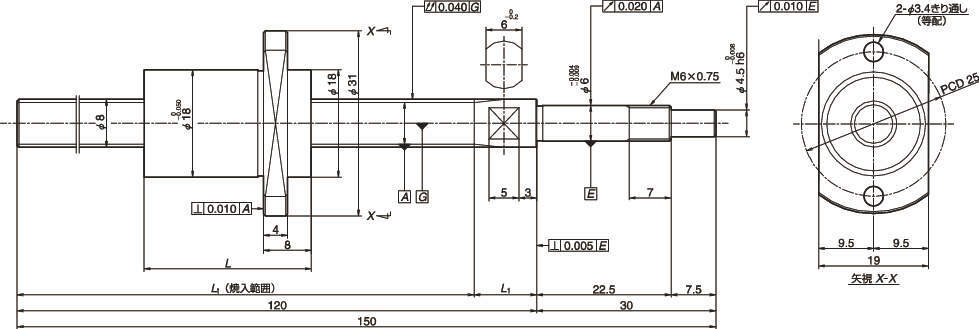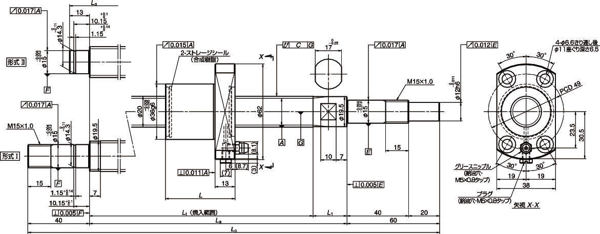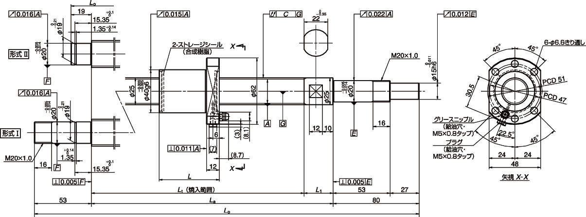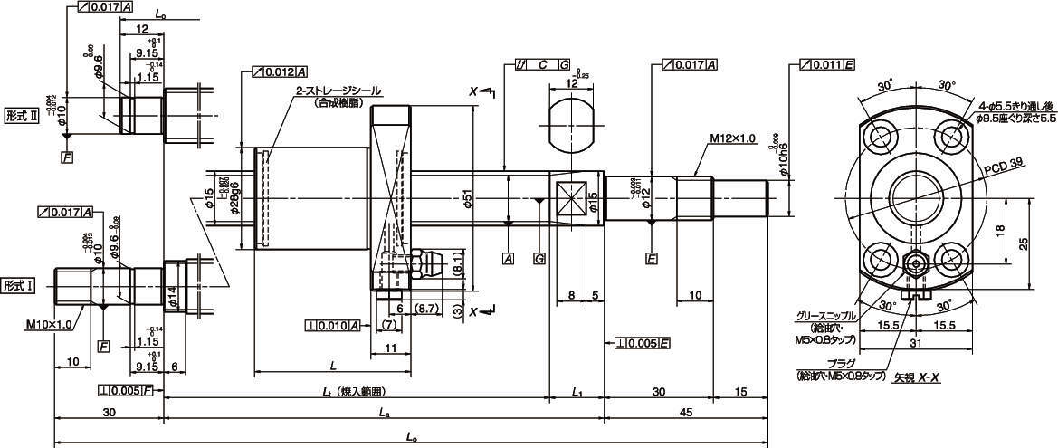 ねじ軸寸法 リード精度 基本定格荷重(N) 許容回転数(min-1) 左側軸端形式