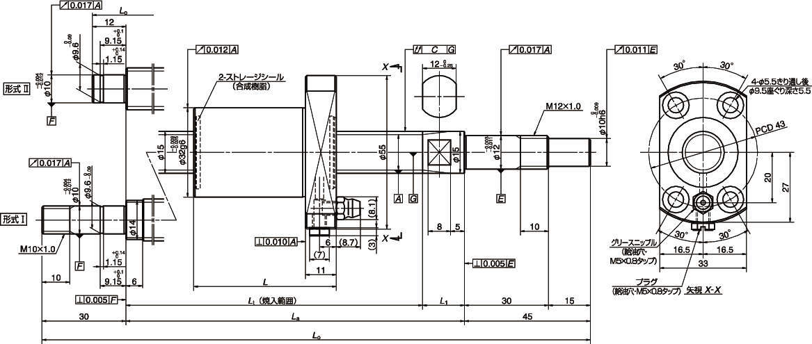 ねじ軸寸法 リード精度 基本定格荷重(N) 許容回転数(min-1) 左側軸端形式