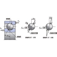 ・単列アンギュラ玉軸受は、接触角をもっているので、ラジアル荷重と一方向のアキシアル荷重または、合成荷重を受けるのに適しています。