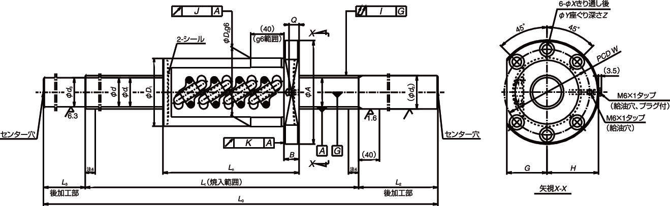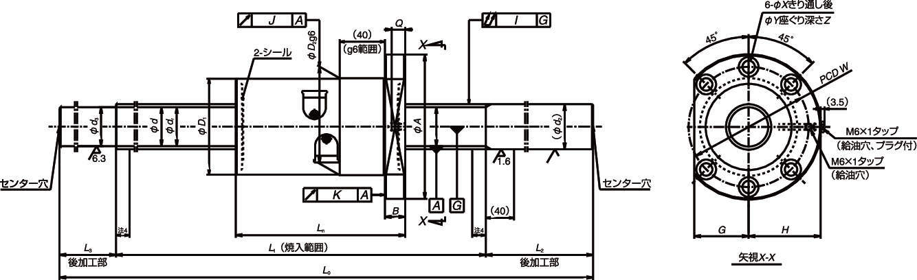 ・本製品は、給油口(M6×1.0)をナットフランジ外周及び、端面の2箇所設定しました。