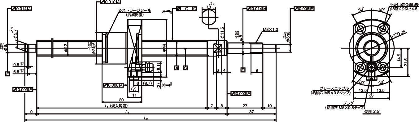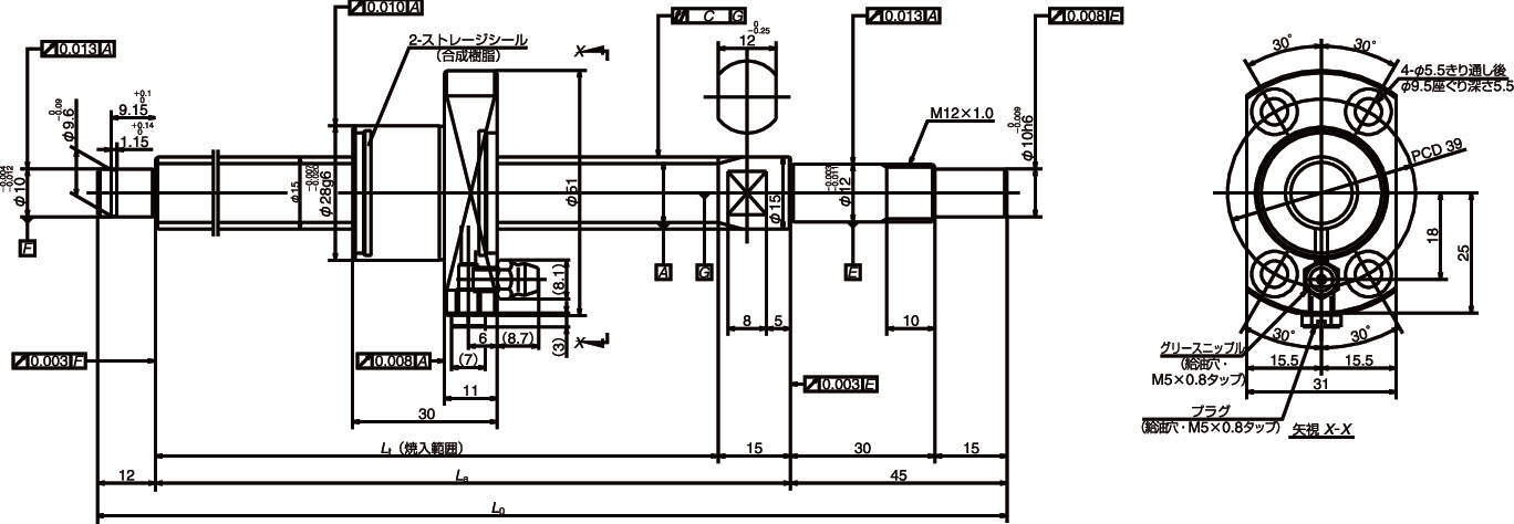 型式 ねじ軸径 リード ねじ軸外径d リードl 基本定格荷重(N) ストローク ねじ軸長さ リード精度 軸心の振れC 予圧動トルク