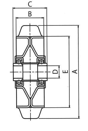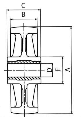 ・F:耐熱耐油ゴム、赤ゴム、導電性ゴム車輪は別途ご指定ください。