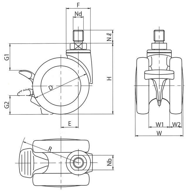 一般的な双輪キャスターに比べて大きなフットブレーキを採用したことにより、ブレーキの操作性を向上させました。軽い踏み込みで確実に車輪、又は車輪及び旋回をロックすることが可能です。