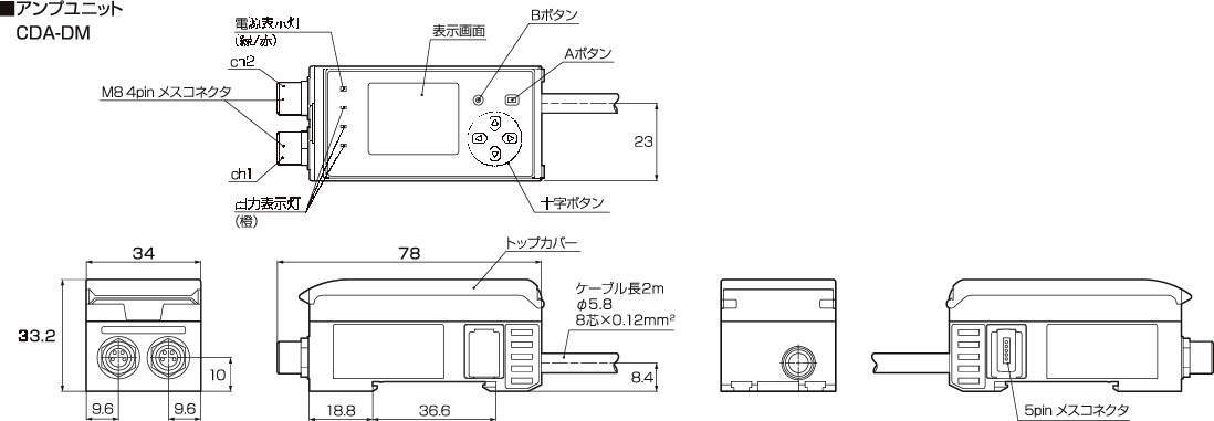 | センサヘッド | ・接続台数:最大2台 ・接続形態:アンプ側:M8 4ピンコネクタ |