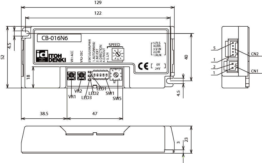| 型式 | CB-016N:標準パワーモーラ NPN信号入力 CB-016BN:ブレーキ付パワーモーラ NPN信号出力 |