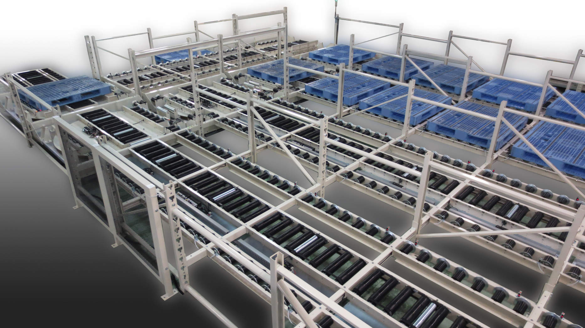 パレット並び替え・ストレージなど… 安全かつ効率化を追求した、パレット専用自動搬送コンベヤ