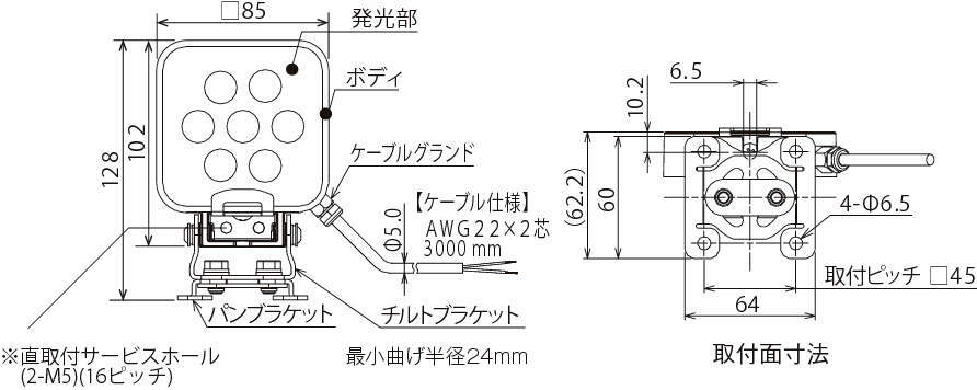 ・自然な配光特性を持たせ、ワーク部周辺も照らします。