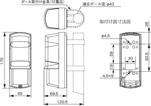 ・壁面取付けのほかポール取付けもできます。