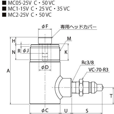 | MC05-25VC | VC-70-R3 | 50 | 7.16 | 25 | 101 | 30.2 | 46 | 18 | 20 | 11 | 8 | 25 | M45×1.5 | 23 | 3 | 約46 | 25 | 18 | 18 | 1.2 |