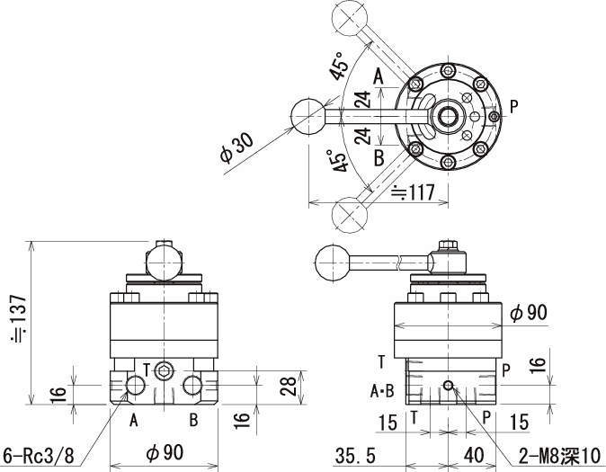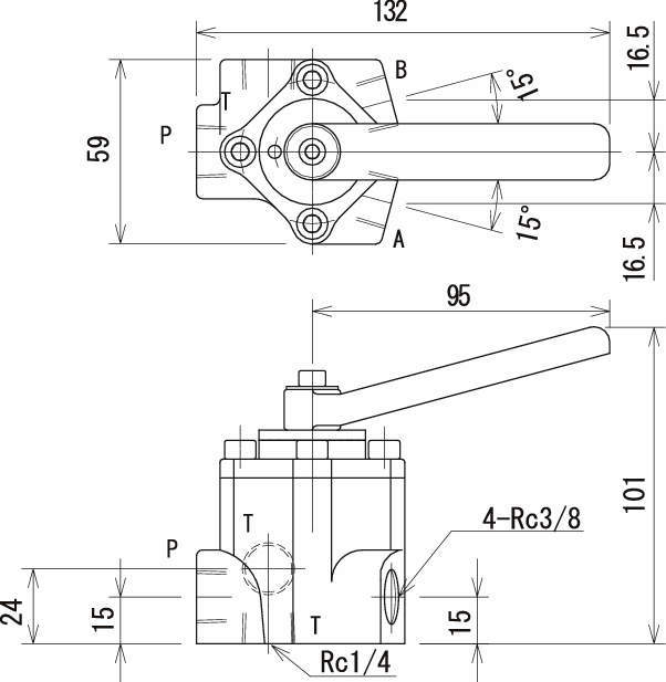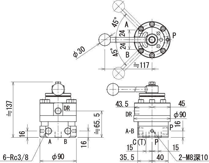 ・HOV-44(H・P・C)のTポート、HOV-44TのDRポートおよびバルブ底面C(T)ポートはRc3/8になります。