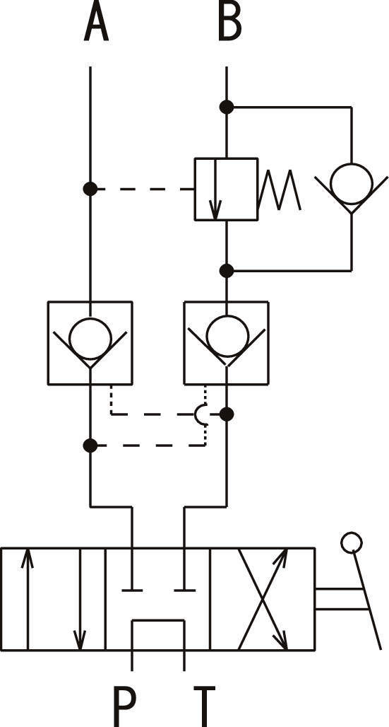 ・SCBT型はパイロットチェックとBポートに外部パイロット式カウンターバランス弁を内蔵しています。