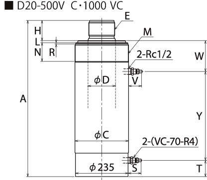 | D5-500VC | VC-70-R4 | 500 | 789 | 127 | 63.42 | M55×3 | 60 | M92×2.5 | 28 | 12 | M127×2.5 | 55 | M55×3 | 55 | 3 | 約45 | - | 84 | - | - | 89 | - | 556 | Rc1/2 | 3582 | 60.5 |