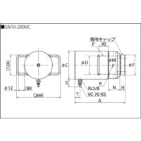 | SN1-200VC | VC-70-R3 | 200 | 368 | 57 | 38 | 50 | 35 | 58 | 25 | 4- φ8 | 38×5 | 約39 | 25 | 専用キャップ | 291 | 6.0 |