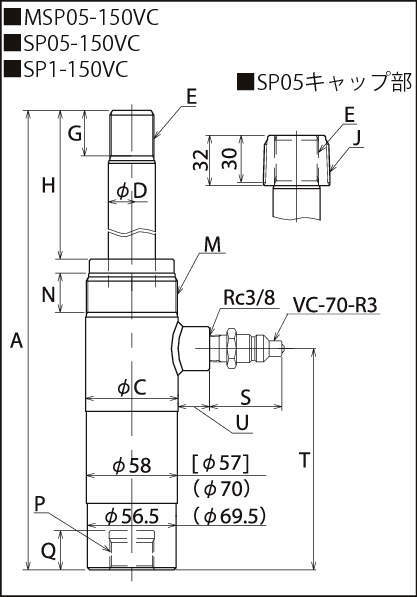 | SP1-150VC | 100 | 14.16 | 52 | VC-70-R3 | 470 | 71 | 30 | M28×2 | 29 | 187 | - | M70×2 | 25 | M28×2 | 30 | ≒46 | 226 | 20 | 213 | 6.9 |