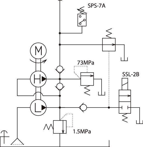 | SMP-3012B | SMP-30 | 100 | 2 | 手動操作型 | 0.25 | 5 | 8.0 | 0.2 | 2.0 | 1.8 | SW-4A | 圧力スイッチSPS-7A×1、方向制御弁SMV-33×1 | 14.5 |