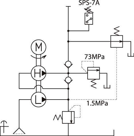 | SMP-3014SK | SMP-30 | 100 | 4.5 | 中間停止型 | 0.25 | 5 | 8.0 | 0.2 | 2.0 | 4.0 | SW-4S | 圧力スイッチSPS-7A×1、方向制御弁SSL-2B×1 | 17.5 |