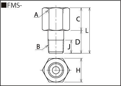 | FMS-RC3/8×NPT1/4 | Rc3/8 | NPT1/4 | 25 | 25 | 50 | 26 | 13 | 0.1 |