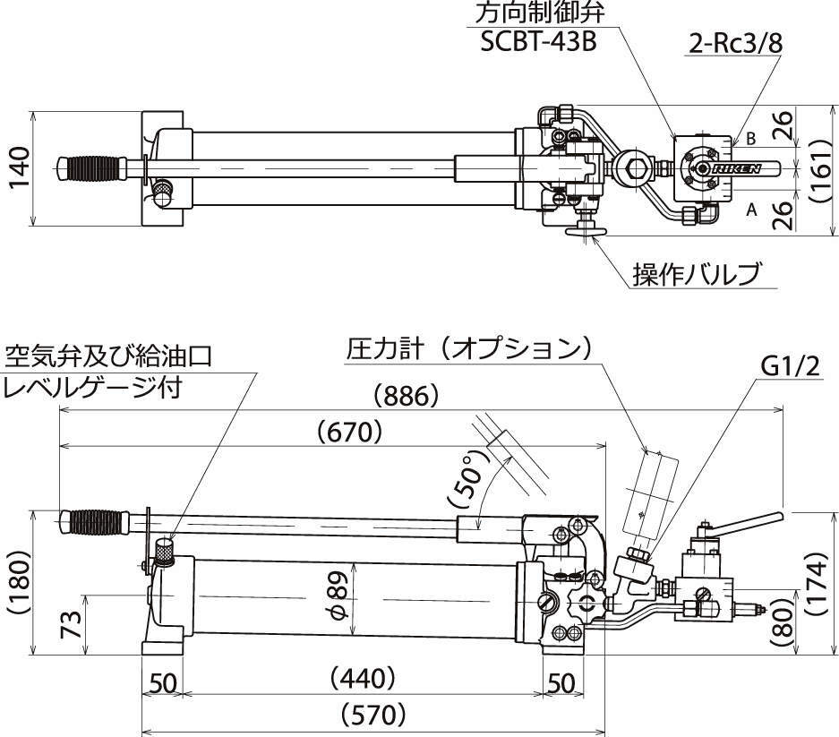・安全弁、空気弁、操作バルブ等をすべて内蔵し、オイルタンクと一体となっていますので、軽量小型化され移動が簡単です。