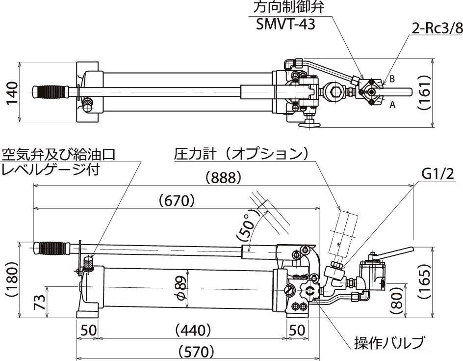 ・安全弁、空気弁、操作バルブ等をすべて内蔵し、オイルタンクと一体となっていますので、軽量小型化され移動が簡単です。