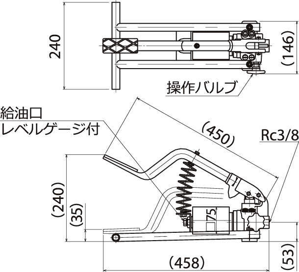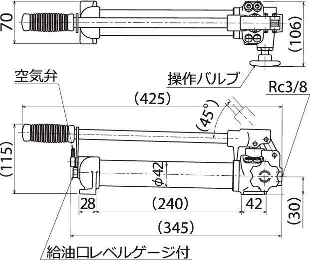 ・安全弁、空気弁、操作バルブ等をすべて内蔵し、オイルタンクと一体となっていますので、軽量小型化され移動が簡単です。