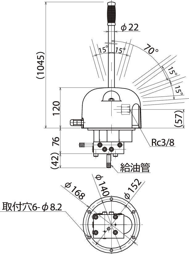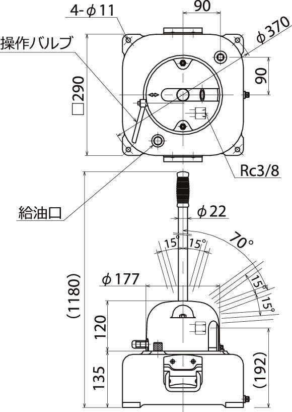 ・P-14型(油タンクなし)は縦・横いずれの方向にも設置できますので装置に適した油タンクを設置してご使用ください。