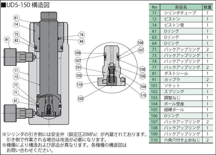 | UD20-150 | 2000 | 103.86 | 80.5 | 40.25 | 150 | 375 | 115 | 185 | 90 | M84×3.0 | 35 | 40 | M185×3.0 | 65 | ≒60 | 48 | ≒60 | 97 | 190 | 1558 | 70 |
