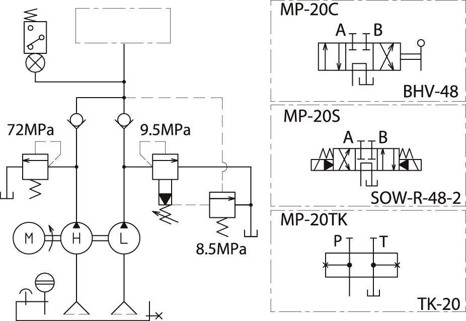 ・高圧・低圧各々のポンプを組み合わせて、一つのモータで駆動し作業のスピードアップを目的としたポンプです。