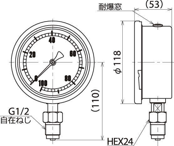 ・作動液が「水道水」で使用可能な圧力計です。
