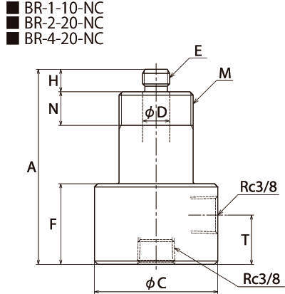 | BR-4-20D-NC | カップラ無し | 40 | 6.81 | 20 | 107 | 38 | 70 | 25 | - | 30 | 2 | - | M52×2 | 20 | 35 | 14 | 1.7 |