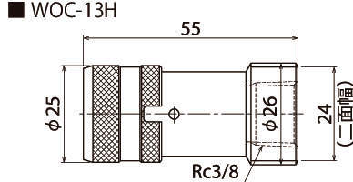 | WOC-15R | ワンタッチカップラ | 3/8 | シリンダ側カップラ | 70 | 水道水 | 0~50 | 0.1 | WOC-13R-DC |