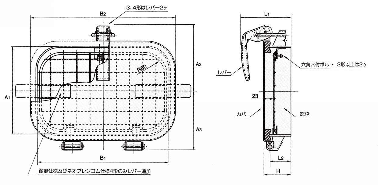 ・ステンレス鋼板をプレス成型したワンタッチ窓です。