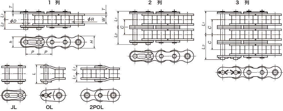 | 型式 | タイプ | チェーン番号 | 列数 |