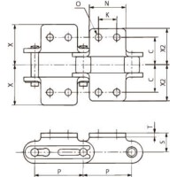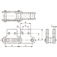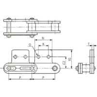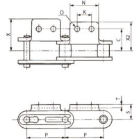 ・一般用A系ローラチェーンのピッチを2倍にし、プレートをフラット形状とし、アタッチメントを付けた搬送用チェーンで、ISO1275のA系、ASME B29.100、JIS B1803に規定されています。