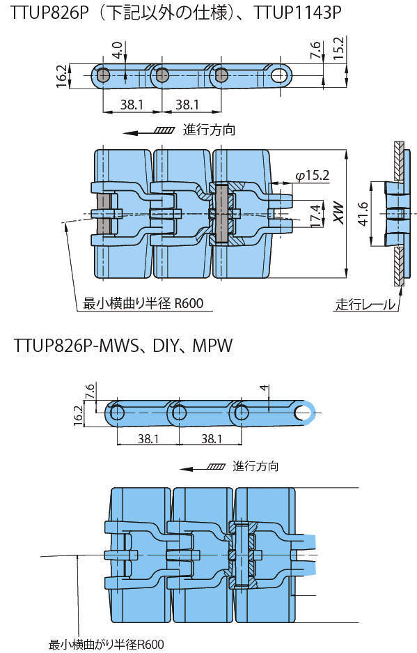 TTUP1905 リンク 普通 グレー ステンレスピン 190.5 38.1 600 1.08 100 50 -20~80 1.6