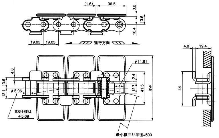 チェーンピッチ 19.05mm