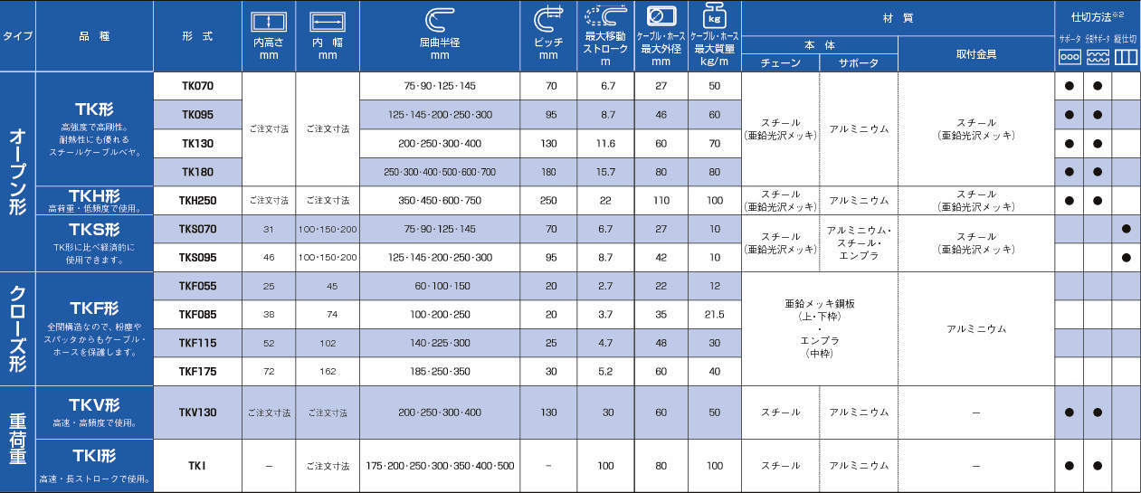 ・高強度で高剛性。耐熱性にも優れています。 ・サポータ孔をケーブル・ホース径に最適な孔径に加工しますので最高の支持物保護性を実現します。