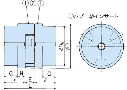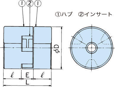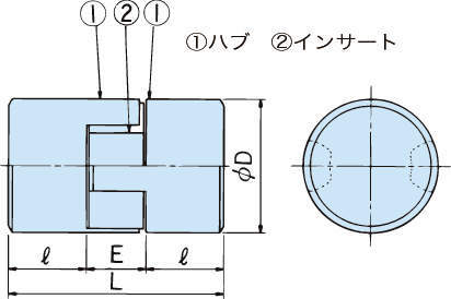 ・ハブの爪とインサートで連結する構造ですから、軸方向の移動だけで連結・分離ができます。
