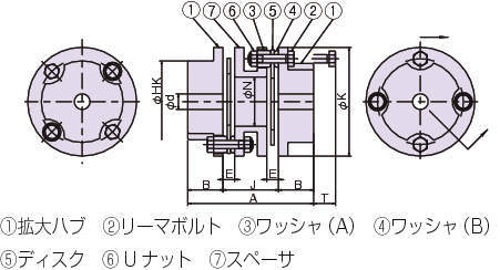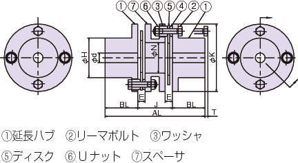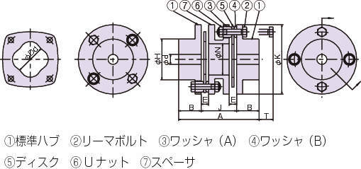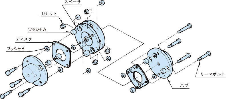 2組のディスクセットを持ち、偏角、平行偏心、軸方向変位を吸収できます。