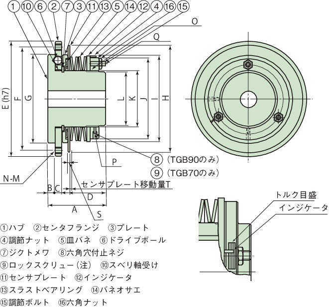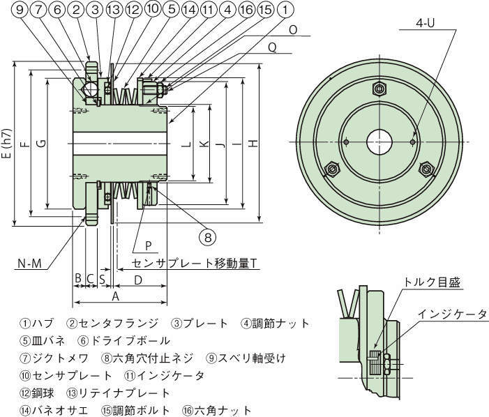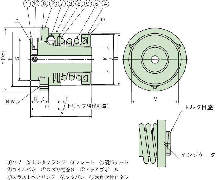 ・調節ナット(ボルト)を回すだけで、自由にトリップトルクの調節ができます。