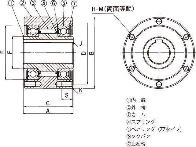 径 H7 キー溝 面取り J PCD D 有効ネジ長さ S サイズ H-M 内輪 外輪