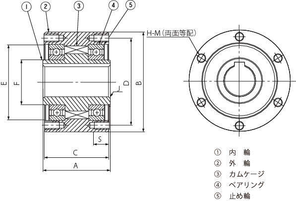 | 径 H7 | キー溝 | 面取り J | PCD D | 有効ネジ長さ S | サイズ H-M | |||||||||